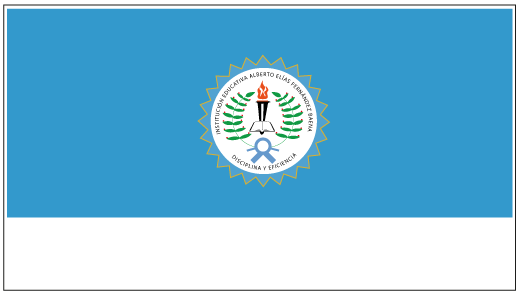 El color azul ocupa las tres cuartas partes de la bandera, es el color representativo del colegio; el color del cielo y de las aguas del mar. El color blanco que ocupa el resto de la bandera simboliza la paz. En la mitad de la bandera está plasmado el escudo de la institución.